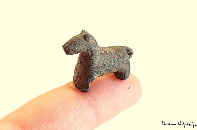 Nuotraukoje rodomas artefaktas atsitiktinai vieno žmogaus buvo aptiktas Skuodo rajone, suardytame kapinyne (arimuose).