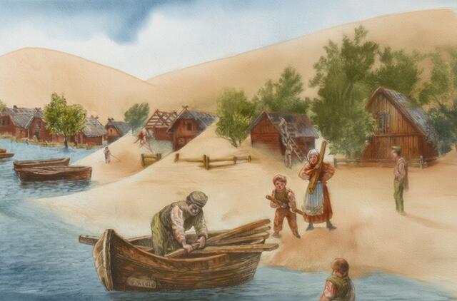 Iliustracija – asociatyvi: nuostabaus XIX a. pabaigos medžio raižinio (jame pavaizduotas Pilkopės kaimo užpustymas ir žvejų bendruomenės evakuacija) fragmentas iš mano kolekcijos.