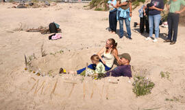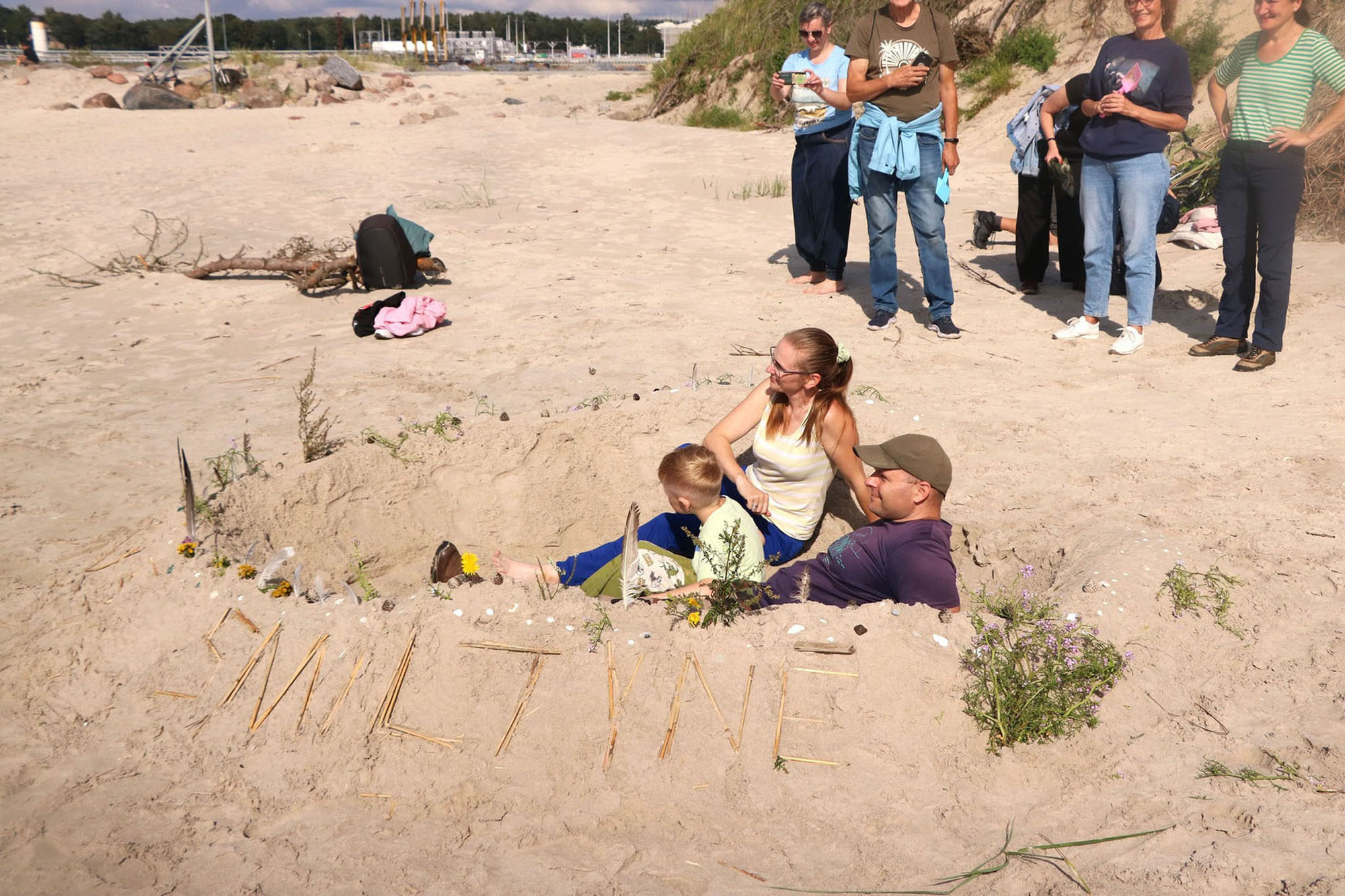 Išbandėme ir sunkų darbą. Smiltynė moterims rodė, kaip XIX a. buvo formuojamas apsauginis pajūrio kopagūbris, ir samdinės rankomis eilė po eilės statė žabtvores, sodino smėlį savo šaknimis sutvirtinančius specifinius augalus.
