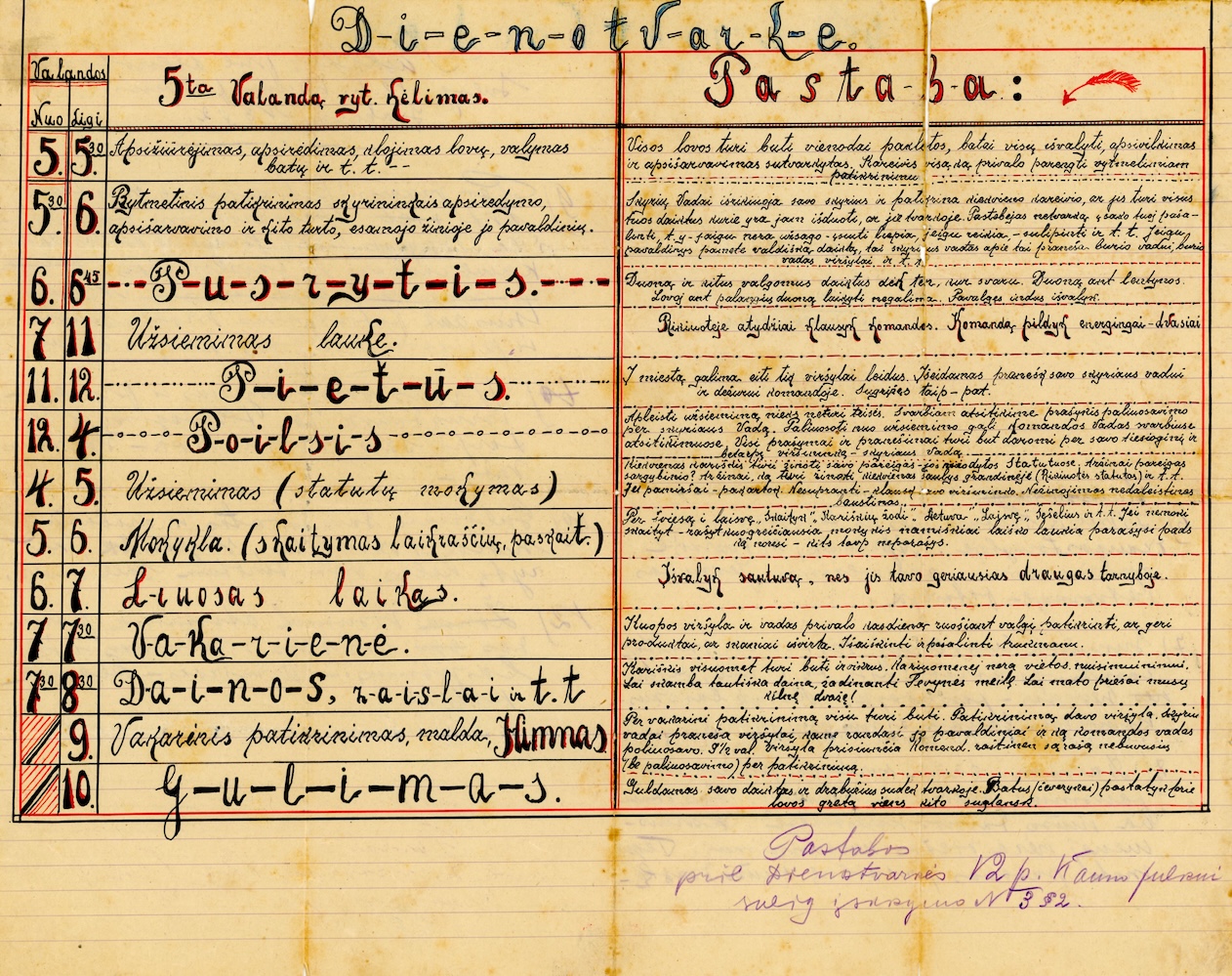 Pastabos gali būti sunkiai įskaitomos, todėl išsididinti tekstą ir patogiau skaityti galite LIMIS sistemoje. Muziejaus rinkiniuose saugoma ir dar viena 12-ojo pėstininkų pulko dienotvarkė su vyr. ltn. Bukevičiaus pastabomis – ją galite paskaitinėti čia.