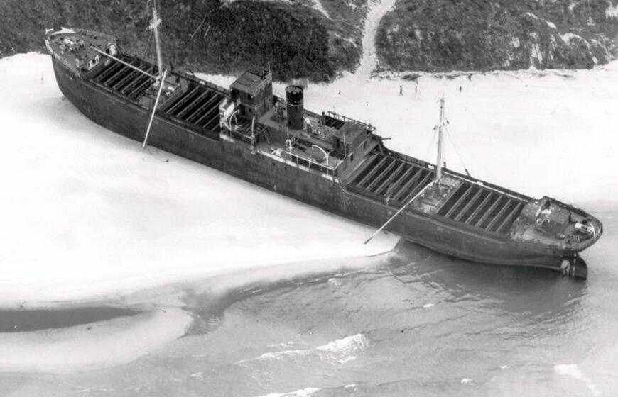 Užsispyrusio kapitono valdyto ir ties dabartiniu vyrų pliažu, netoli Antrojo pasaulinio karo priešlėktuvinės vokiečių pakrantės baterijos „Seestrand” užstrigusio laivo bėdos ne tik nesibaigė, bet tik prasidėjo. Nelaimėlis neilgai trukus buvo išplautas tiesiog į paplūdimį.