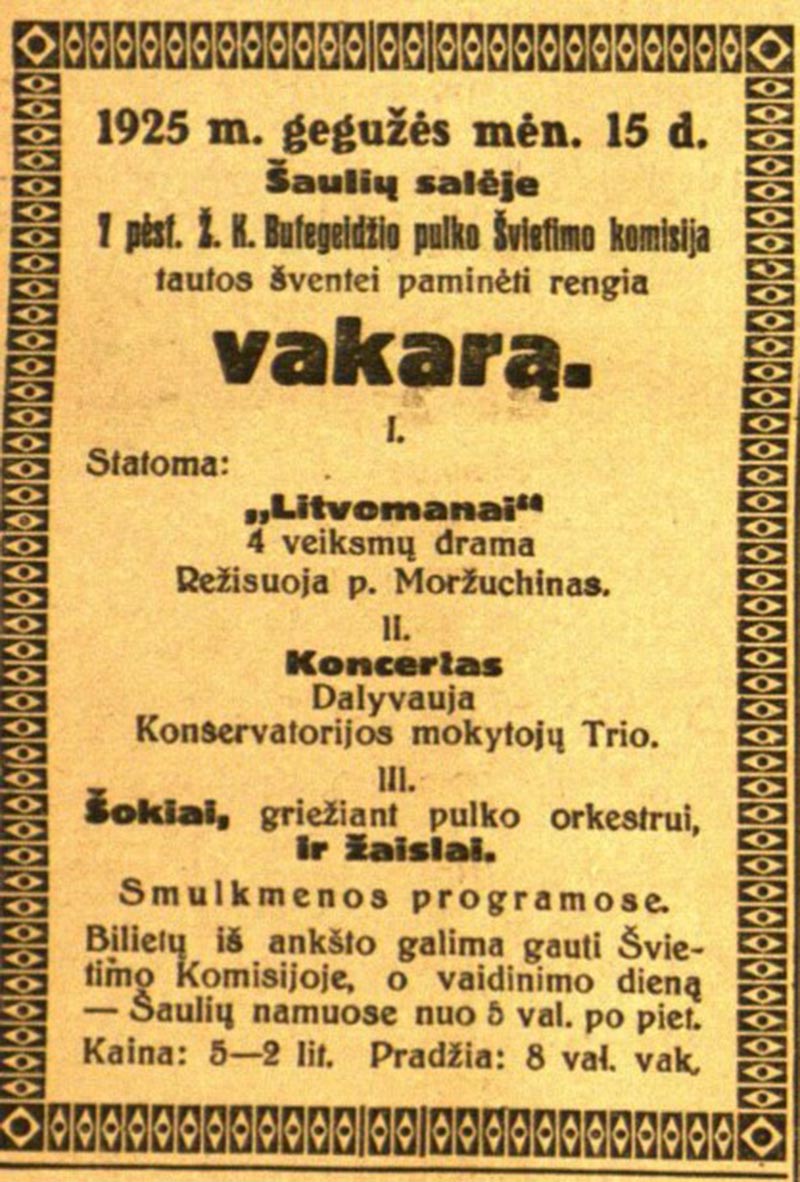 „Tautos šventę gegužės 15 d. švenčia visos Klaipėdos krašto valstybinės ir ekonominės valdžios įstaigos“, - informavo „Klaipėdos žinios“ 1925 m. gegužės 13 d.