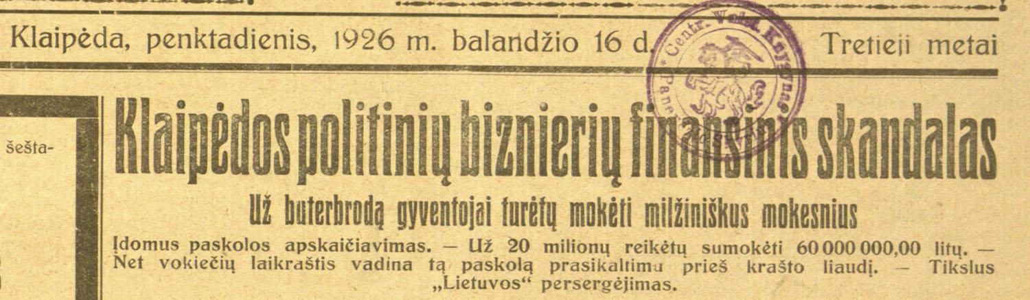 Klaipėda prieš 100 metų: finansinis skandalas