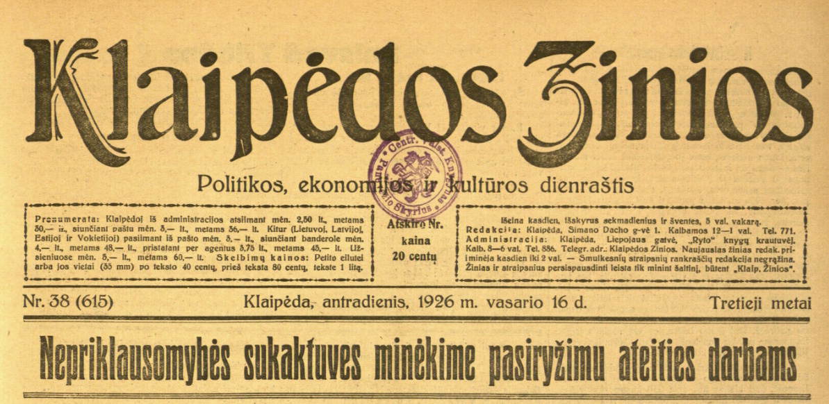 Aišku, kad yra daug kas taisytino, mainytino, mūsų mieloje tėvynėje, bet kaip tik iš klaipėdiškių lietuvių turi išeiti gaivi atnaujinimo ir sveikos kritikos dvasia, o ne surūgęs pesimizmas“, - 1926 m. vasario 16-osios numeryje rašė lietuviškas uostamiesčio laikraštis „Klaipėdos žinios“.