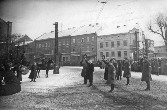 Tada karo orkestras griežia Tautos Himną. Civiliai nusiima kepures, bet kai kuriems tai “nepatogu„. Liūdna, kad, pavyzdžiui, tokie aukštesni Direktorijos valdininkai, kaip štai p. M., nemoka gerbti tokią minutę ir turbūt drovėdamiesi prieš vokiečius liko kepuriuoti. O gal tai naujasis Direktorijos kursas?“ - pyko Vasario 16-osios iškilmes kitame numeryje aprašęs laikraštis.