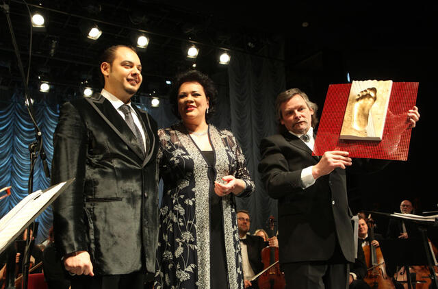 Prezidento Algirdo Mykolo Brazausko ir jo žmonos Kristinos pėdų įspaudai, nulieti dailininko Vytauto Karčiausko. Redakcijos archyvo nuotr.