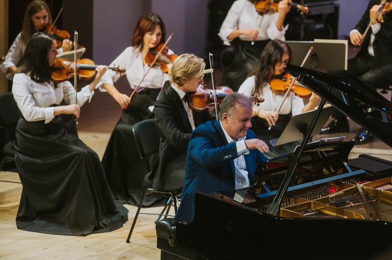 Pirmoje koncerto dalyje skambėjo Antoníno Dvořáko Serenada styginiams E-dur, Op. 22 (B. 52) . Po pertraukos publika išgirdo J. de Solauno Concertino breve fortepijonui ir styginiams. Kartu su J. de Solaunu orkestras atliko Ludwigo van Beethoveno Koncertą fortepijonui ir orkestrui Nr. 3, op. 37 (Vinzenzo Lachnerio aranžuotė styginių orkestrui).