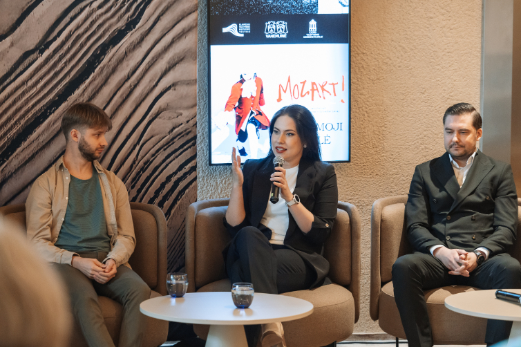 Spaudos konferencijoje dalyvavo gausus būrys teatro profesionalų: režisierė Viktorija Streiča, solistai Gabrielė Kuzmickaitė ir Andrius Apšega, Vygantas Bemovas iš Kauno valstybinio muzikinio teatro, Klaipėdos valstybinio muzikinio teatro vadovė Goda Giedraitytė, dirigentė Adrija Čepaitė ir choreografas Mantas Ūsas.