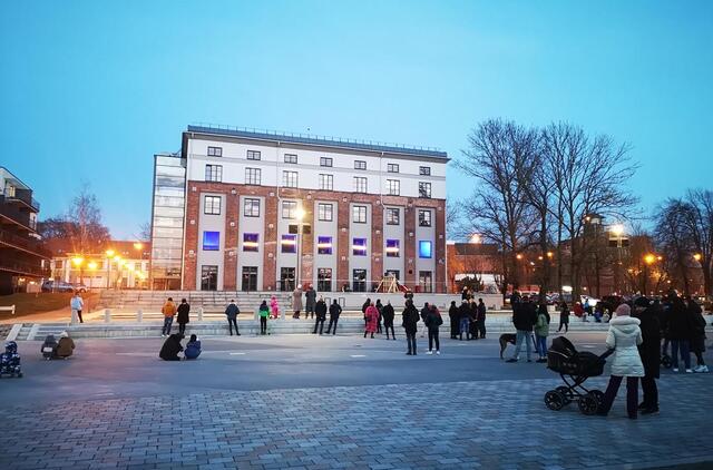 Atgijo Jono kalnelis, kai žmonės sutūpė ant betoninių jo laiptų ir pasklido aikštelėje priešais "Kultūros fabriką". Šio pastato antrojo aukšto languose pasirodė "Taško" teatro aktoriai, rankose laikantys lempas.