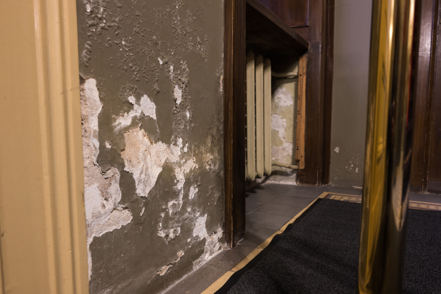 Ant sienų visur matomas pelėsis. Jį bandoma „padažyti“, kad nekristų į akis, bet tai nepadeda – po kiek laiko jis vėl pučiasi, plečiasi ir išlenda į paviršių.