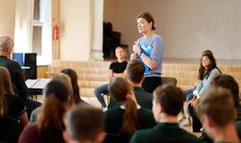 Pasitaiko, kad per savaitę turiu pravesti net keturias edukacijas. Vaikai džiaugiasi viskuo. Kai ekskursijos pabaigoje paklausiu, kas labiausiai patiko, sulaukiu įvairių atsakymų. Tačiau ilgiausiai su jais užtrunkame grimerinėje, kai reikia išeiti, turiu vaikus raginti, nes ten laikas tiesiog ištirpsta nepastebimai. Su paaugliais labiau diskutuojame apie darbo teatre specifiką, kuo skiriasi muzikinis teatras nuo dramos ir t. t. Suaugusiesiems edukacijos dar neteko vesti, nors žinau, kad lapkričio mėnesį turėsiu 20-ies suaugusiųjų grupę. Šiai edukacijai ruošiuosi atskirai, nes turbūt suaugusieji nepraleis pusę laiko besifotografuodami su perukais. O gal?