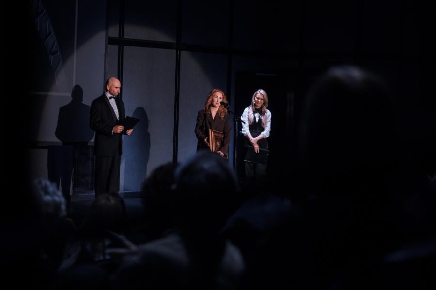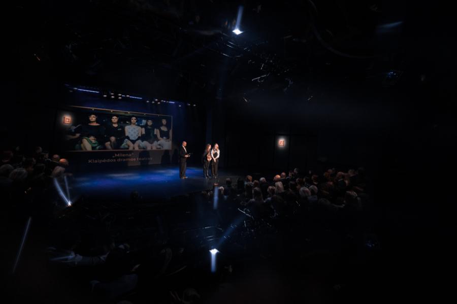 Dar viena „Padėkos kaukė“ į Klaipėdos dramos teatrą iškeliavo už vizualinius ir garsinius sprendimus spektaklyje „Milena“, kurį režisavo Laura Kutkaitė.