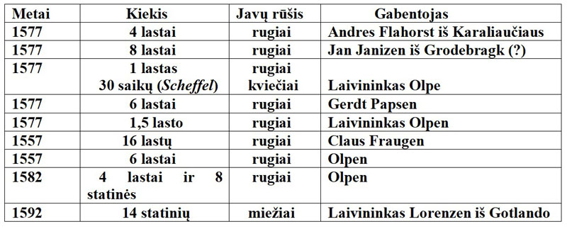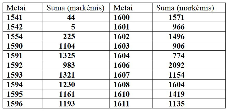 Lentelėje pateikti duomenys rodo, kad XVI a. pabaigoje - XVII a. pradžioje Klaipėdos jūrų prekyba iš esmės liko tos pačios apimties, anksčiau aptarti dirbtiniai suvaržymai neleido sparčiau vystyti verslą.