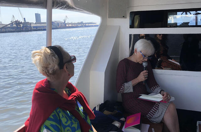 Rašytoja teigė, kad tą patį jausmą dėl humoro dominantės parsivežė ir iš skaitymų „Ant vandens“, kai poetai išplaukę į marias vieni kitiems bei pakrančių pušims, antims ir garniams, pasakojo anekdotus bei baigiamajame „Poezijos pavasario“ renginyje Ievos Simonaitytės bibliotekoje.