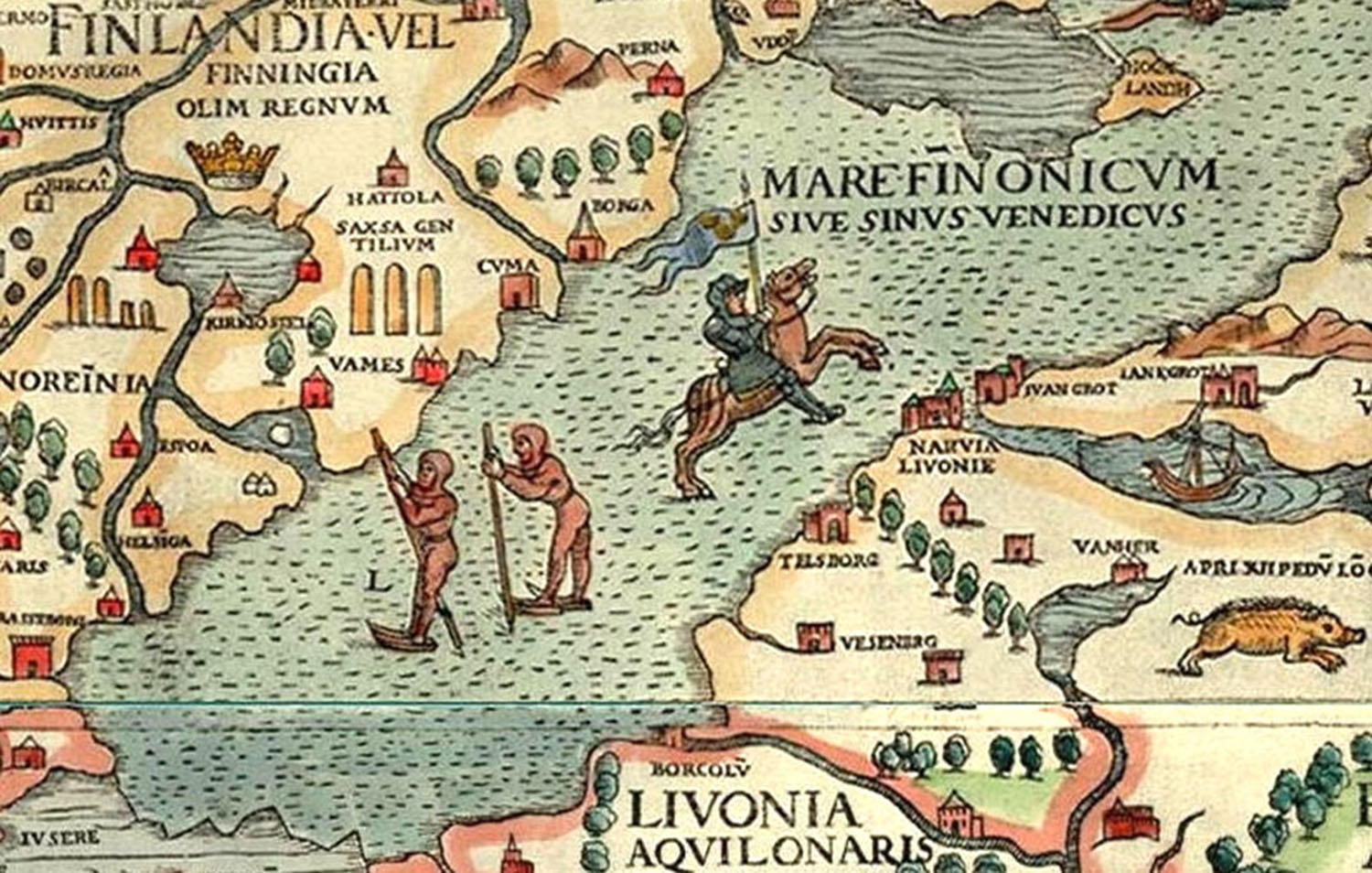 Suomijos įlankoje ant ledo kartografas nupiešė žmones, čiuožiančius slidėmis, šalia - riterį ant žirgo. Kitoje žemėlapio vietoje – arkliais kinkytos rogės skrieja per Baltijos jūrą sukausčiusį ledą link Švedijos krantų”, - pastebėjo archyvarai.