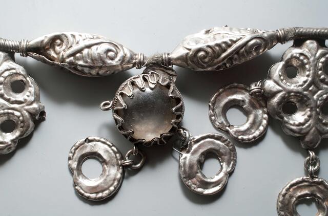 Iš kur tiksliai yra šis papuošalas, pasakyti sudėtinga. Į jį panašūs iš sidabriniai vėriniai Lietuvoje aptikti dar ir Gėliogaliuose (Molėtų r.) bei Stakliškėse (Prienų r.). Šiuos radinius sieja panašios karolių ir kabučių formos bei puošybos elementai – filigrano raštas ir brangieji akmenys. Filigranas – mūsų kraštui nebūdingas puošybos būdas, atėjęs iš rytų slavų apgyvendintų teritorijų.