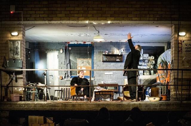 Spektaklyje-komedijoje vaidina aktorius Giedrius Savickas - statybininkas emigrantas. Antrasis dueto narys - Mariaus Čižausko kuriamas intelektualas, politinis disidentas, anarchistas. Intelektualas mąstytojas ir juodadarbis. Tiesą sakant, ši pora gali būti ir du pabėgėliai iš Sirijos, turkai Berlyne, indai Londone, alžyriečiai, somaliečiai Paryžiuje, rusai, tadžikai Maskvoje ir du mūsiškiai Vilniuje.