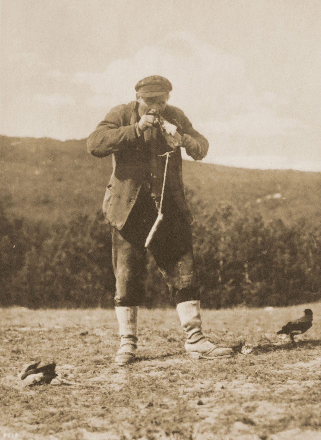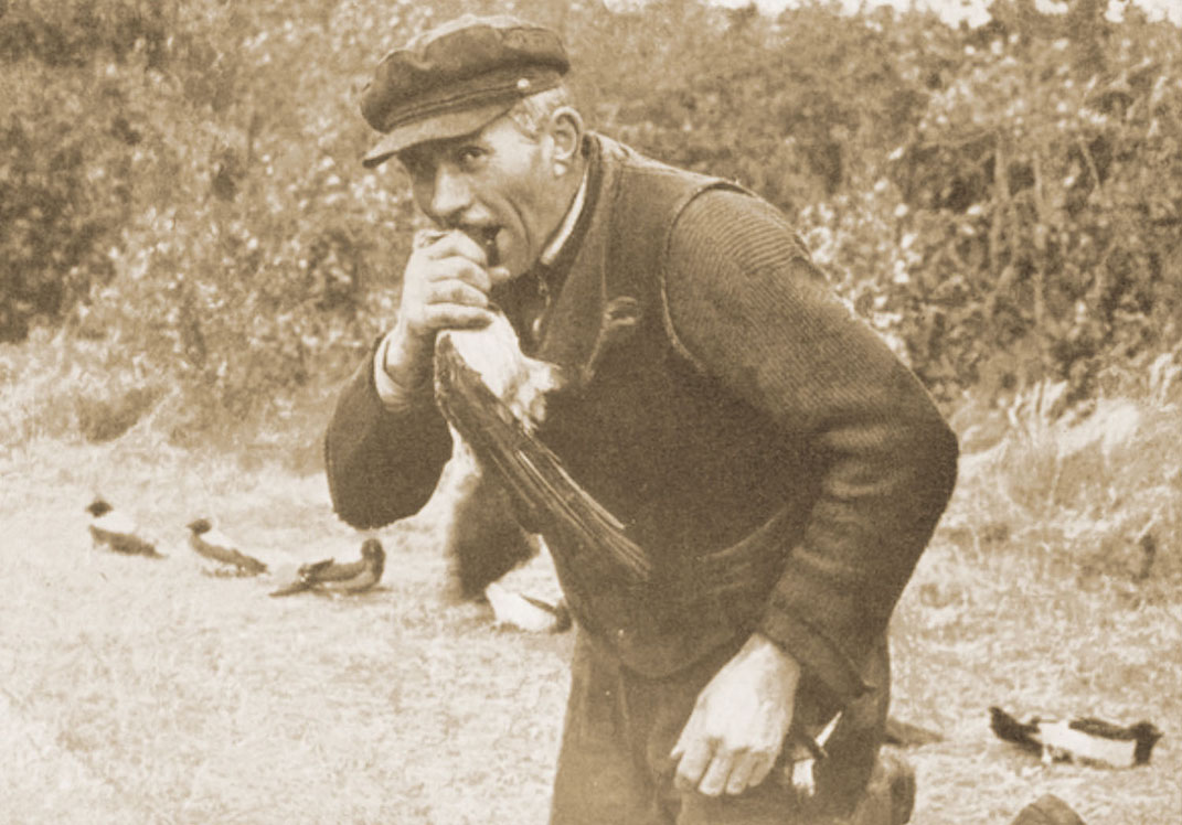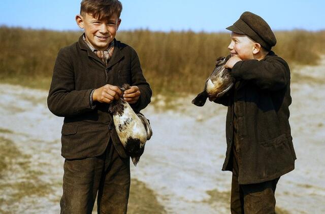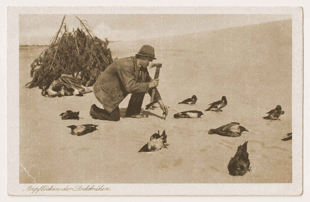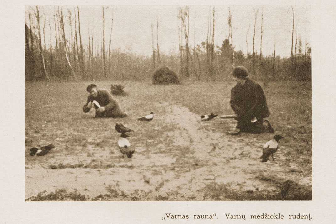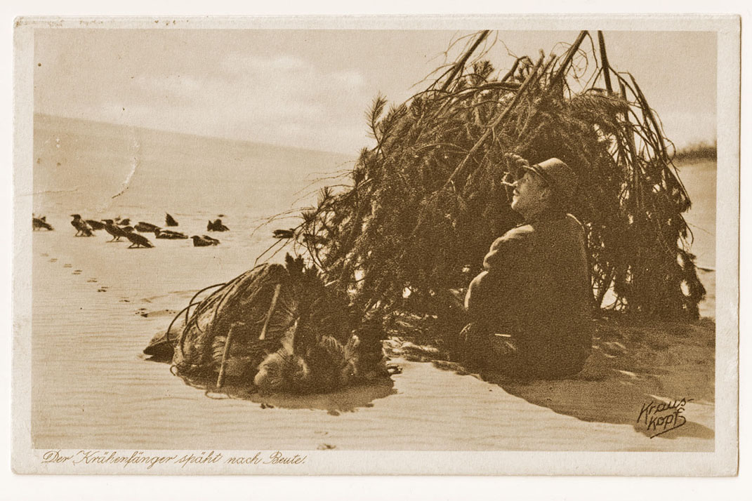 © Šiame apie 1940-1941 m. fotografo Fritzo Krauskopfo išleistame atviruke pavaizduoti kuršininkų vaikai, imituojantys varnų nugalabijimą. Saviškių nelietė. Gaudydavo dažniausiai rudenį Kuršių nerija migruojančias varnas. Deniso NIKITENKOS kolekcija ir archyvas