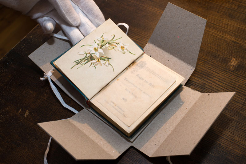 Vydūno vestuvinė dovana žmonai Klarai - vokiška maldų knygelė su rašytojo dedikacija.
