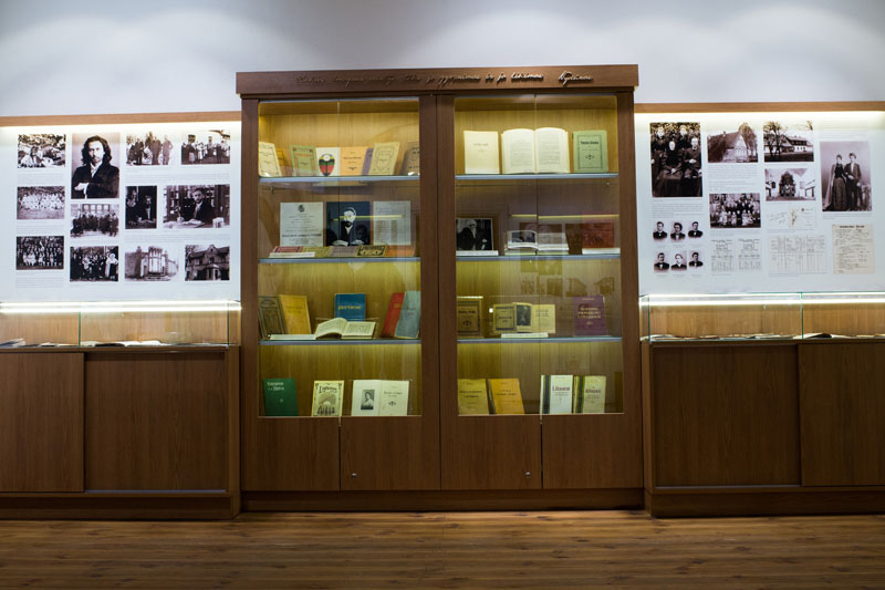 Muziejininkė su didžiule pagarba rodo knygas, kurios yra svarbiausias Vydūno palikimas. Būtent su knygomis susijęs ir Vydūno vardo atsiradimas.