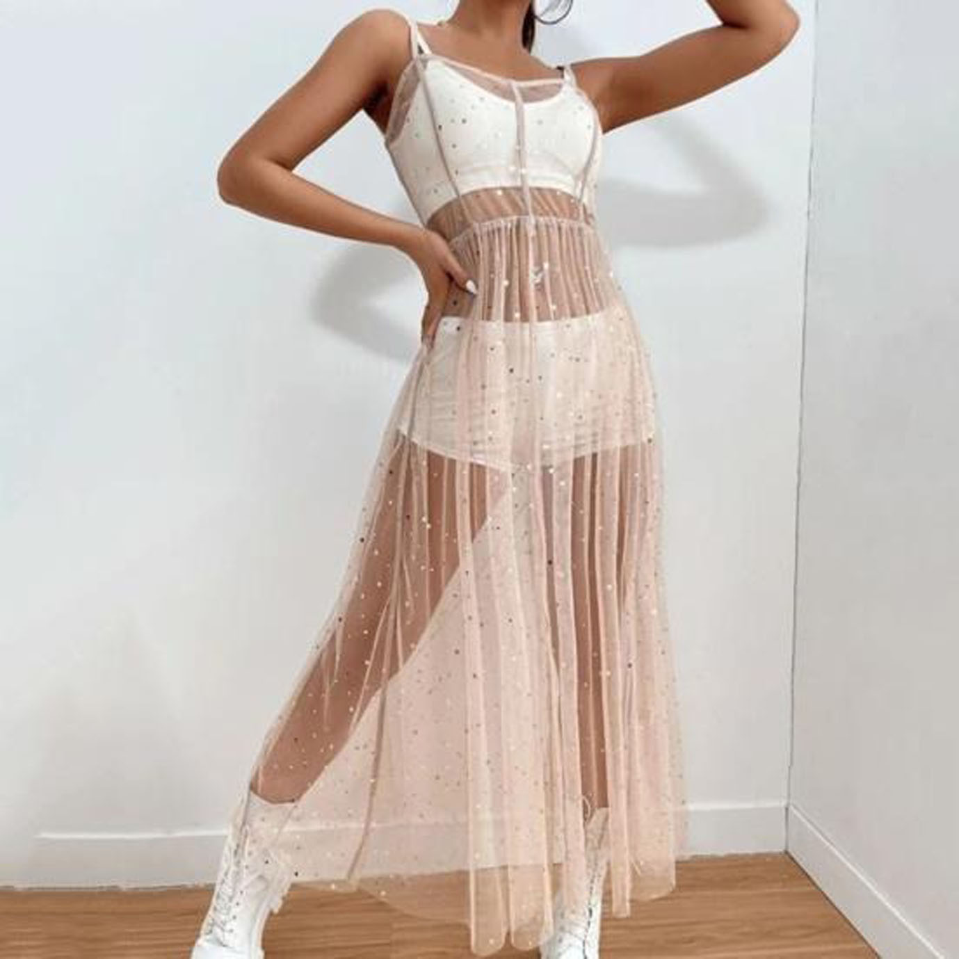Pusiau permatomi audiniai yra madingi – tai gali būti suknelės, topai ar kelnės. Svarbiausia – sumaniai sluoksniuoti: dėvėkite ant topų, maudymosi kostiumėlių ar bodžių. Hermès siūlo santūrią seksualumą, o Prada ir Brandon Maxwell prideda ryškių atspalvių ir blizgesio.