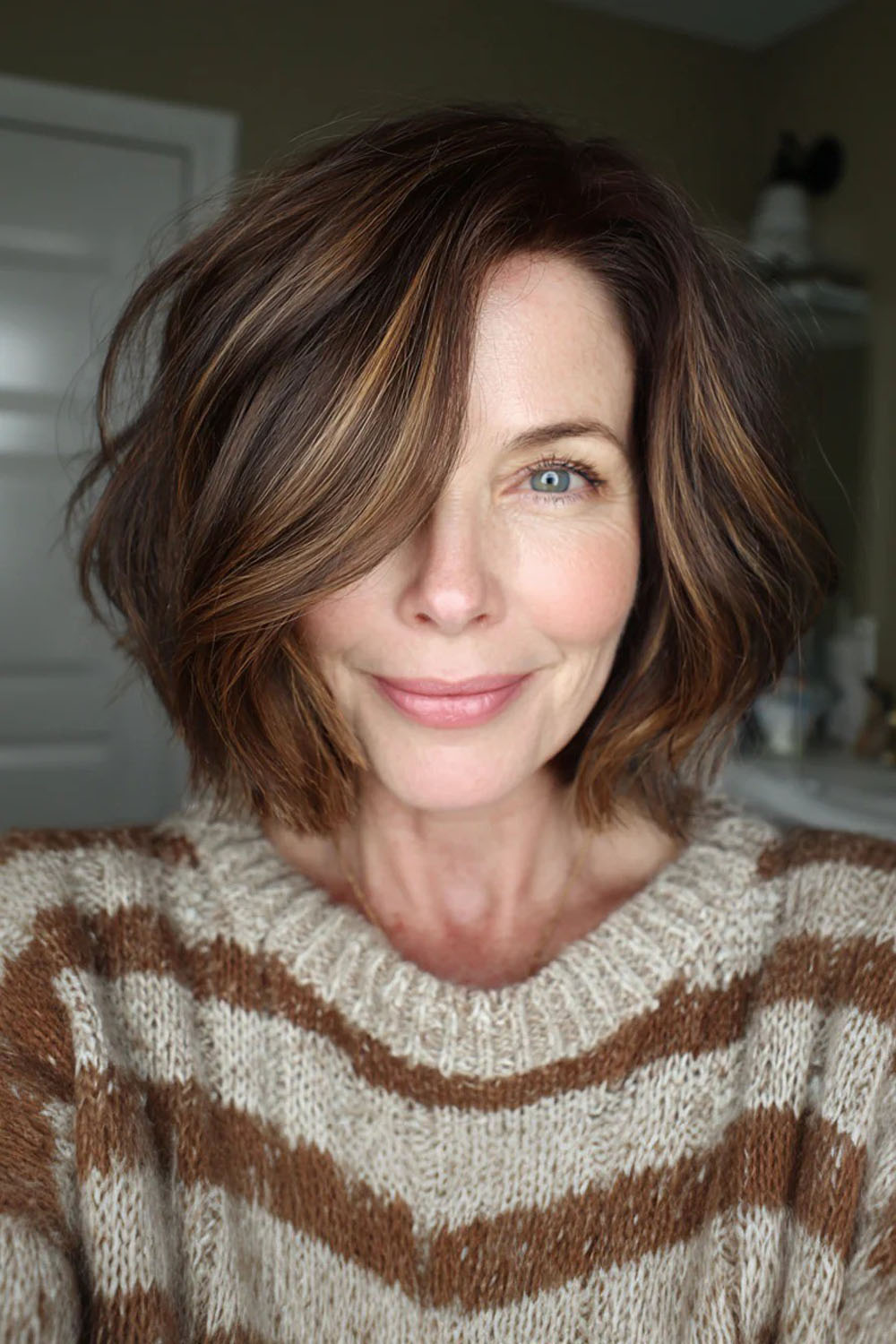 Pailgintas bobas su minkštomis bangomis ir kaštoniniu atspalviu