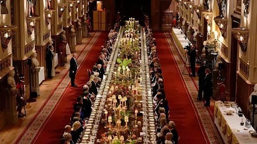 Vindzoro bankete akivaizdžiai trūko tradicinių žvaigždžių iš pasaulietinių kronikų puslapių. Nebuvo net nuolatinių karališkųjų renginių svečių – sero Davido Beckhamo ir sero Eltono Johno. Tarp pakviestųjų buvo ne tik politikai ir diplomatai, bet ir verslo bei technologijų atstovai.