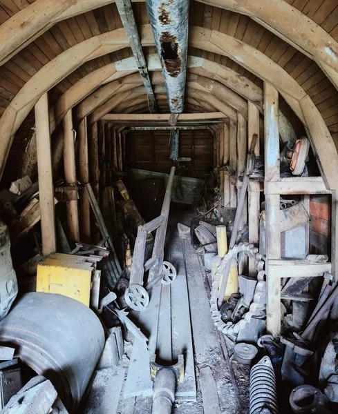 Nuotraukose matyti, kad kalnų masyve yra dvi durys. Kai vyras atidarė vieną iš jų, pastebėjo seną įrangą – kirtiklį, vagonėlį, seną vežimėlį, darbo įrankius.