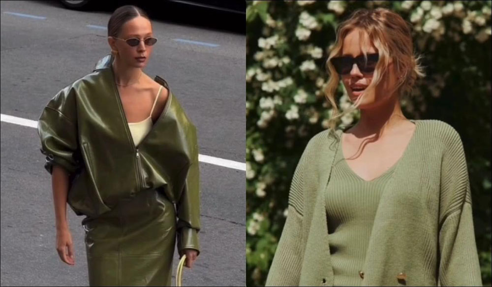 Žalia (alyvuogių, šalavijų). Šios spalvos tampa puikiu pavasario garderobo pagrindu. Pasak stilisto: „Jos lengvai dera tarpusavyje ir, manau, puikiai pakeičia bėžinę spalvą. Total-look deriniuose jos visada atrodo itin stilingai.“