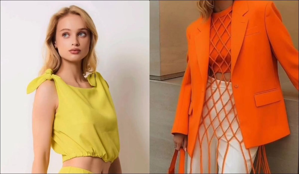 Ryškiai geltona arba mandarinų. Dizainerio teigimu, ši spalva yra energijos ir saulės simbolis: „Naudokite ją aksesuarams ar akcentinėms detalėms – iškart atrodysite madingai ir gaiviai. Pavyzdžiui, oranžinės ar mandarinų spalvos skarelė akimirksniu „nubrauks“ 10 metų. Kodėl? Nes šiltas atspalvis suteikia veidui jaunatviškumo ir ryškumo.“