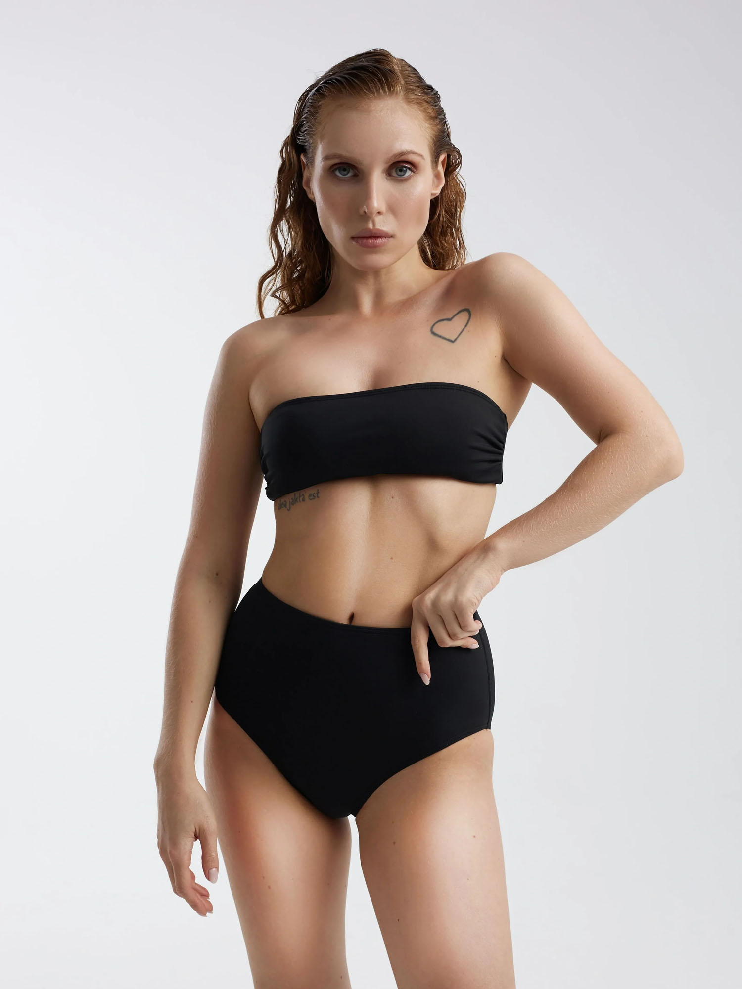 60-ųjų stiliaus bikiniai su aukštais šortais vis dar madingi, be to, jie puikiai paslepia pilvą ir pabrėžia taliją. Rinkitės tiek vienspalvius, tiek su raštu modelius. Viršutinė maudymosi kostiumo dalis gali būti bet kokia, rinkitės tai, kas jums patinka.