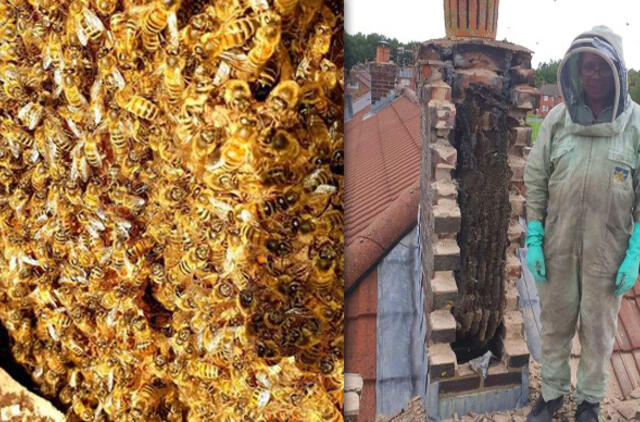 Bitės tarp namo sienų pateko per nedidelį plyšį sename ir ilgai nenaudotame dūmtraukyje.
