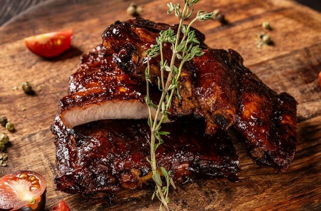 - Tuomet įjunkite grilio režimą arba padidinkite orkaitės temperatūrą, grąžinkite ten šonkaulius ir dar kepkite, kad padažas ant šonkaulių glazūruotųsi. Atidžiai stebėkite procesą, kad nesudegintumėte patiekalo.
