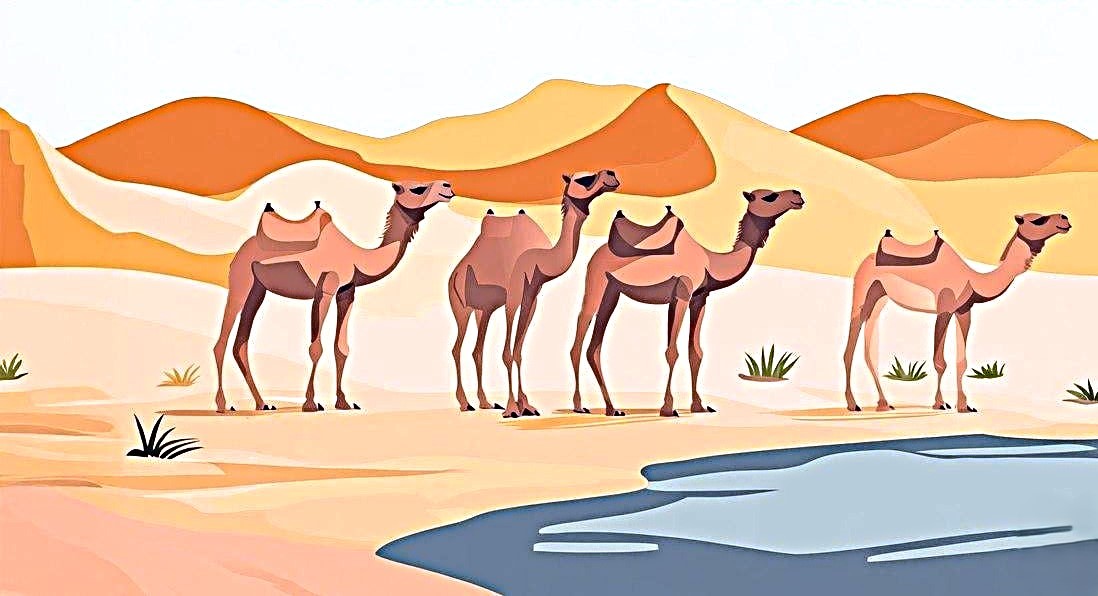 Šiandien jūsų užduotis - rasti klaidą paveikslėlyje, kuriame pamatysite grupę kupranugarių dykumoje.