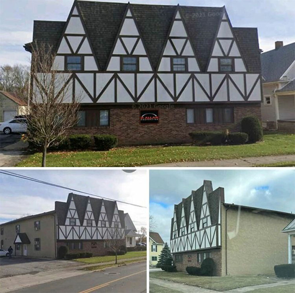 Atrodo, kad du visiškai skirtingi namai nusprendė susituokti ir susilieti ekstazėje tiesiog vidury gatvės. Atrodo keistai, bet, tikimės, jie laimingi.