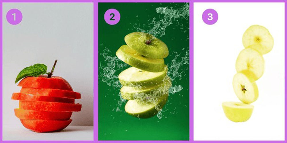 Nesvarstykite – pasirinkite obuolį, kuris jums labiausiai patinka. Jūsų pasirinkimas gali atskleisti daugiau apie jūsų asmenybę, nei manote! Būkite sąžiningi ir spontaniški.