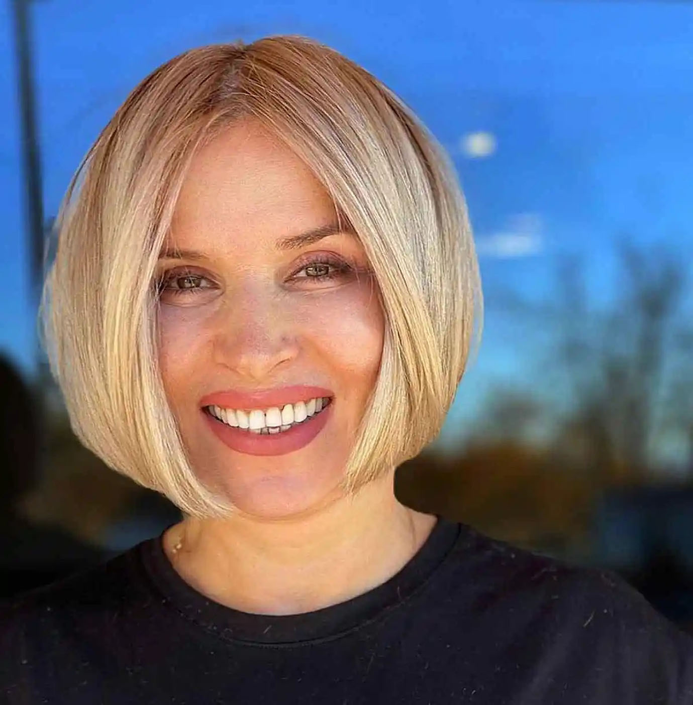Pagyvinkite savo įvaizdį su šiuo drąsiu bob – tai idealus rafinuotumo ir žaismingo stiliaus derinys.