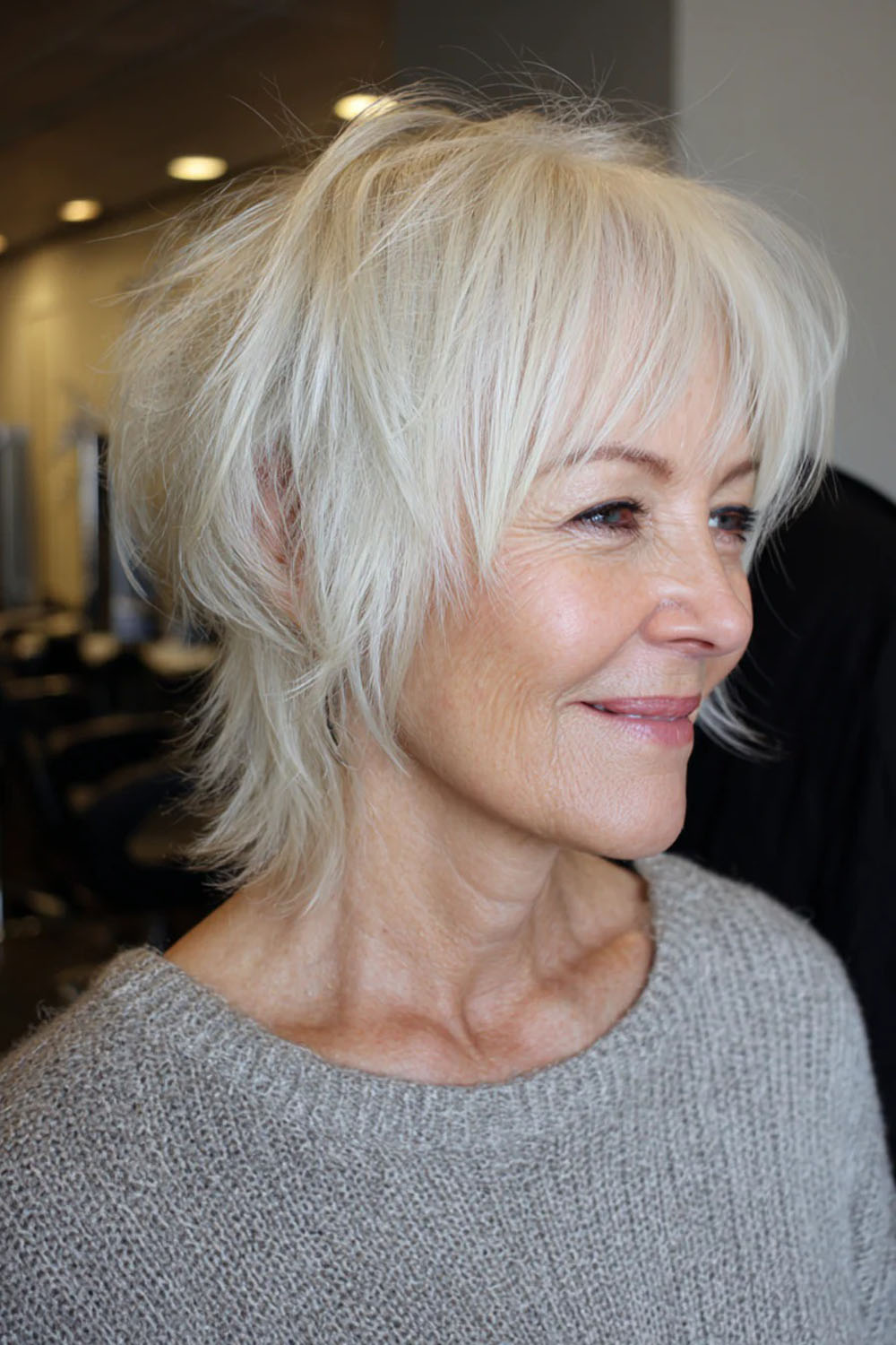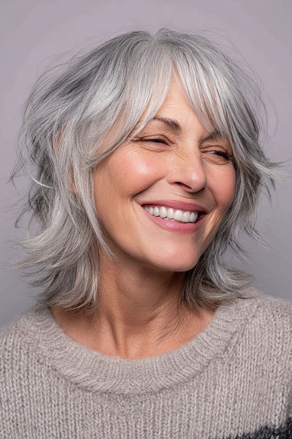 2025 m. „Shag" tampa švelnesnis ir lengvesnis, atspalviai parenkami taip, kad atgaivintų odą ir suteiktų spindesio: natūralūs žili plaukai su sidabriniu blizgesiu, šiltas medus, šaltas smėlio blondas.