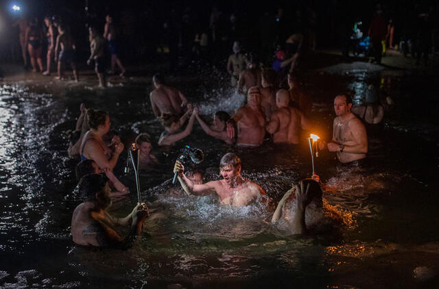 Beje, sveikuoliai ruoniai tobulina savo veiklą. Praėjusio ketvirtadienio vidurnaktį daugelio Lietuvos miestų, tik Klaipėdos kažkodėl tarp jų nebuvo, sveikos gyvensenos entuziastai lindo į šaltą vandenį su deglais (žr. nuotr.).Vaizdas kaip iš kino filmo, primena sektos ritualą. Ir dabar jie kasdien visą mėnesį sveikatinsis šaltame vandenyje, nors nebūtinai naktimis. Galite prisijungti.