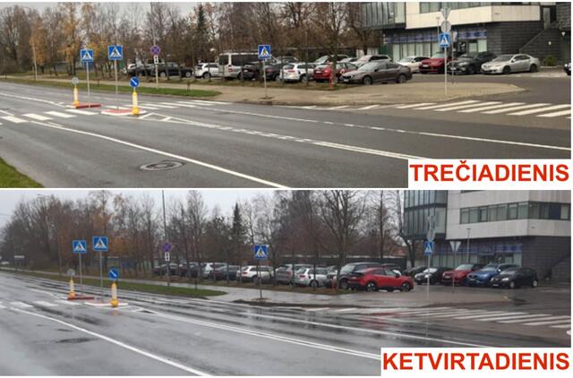 Ketvirtadienį sankryžoje vėl blizgėjo naujai nudažytos baltutėlės ištisinės linijos.