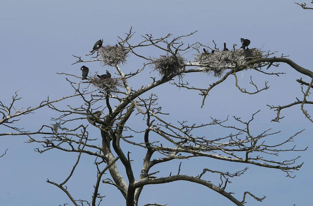 Kormoranai kuo puikiausiai dauginasi, išgaudo vis daugiau žuvų Kuršių mariose ir didina mirtimi dvelkiantį nudergtą plotą Juodkrantės sengirėje.