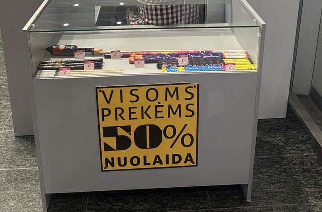 Bulvaras: „Visoms prekėms 50 procentų nuolaida". O kas žino, kiek jos kainavo anksčiau?