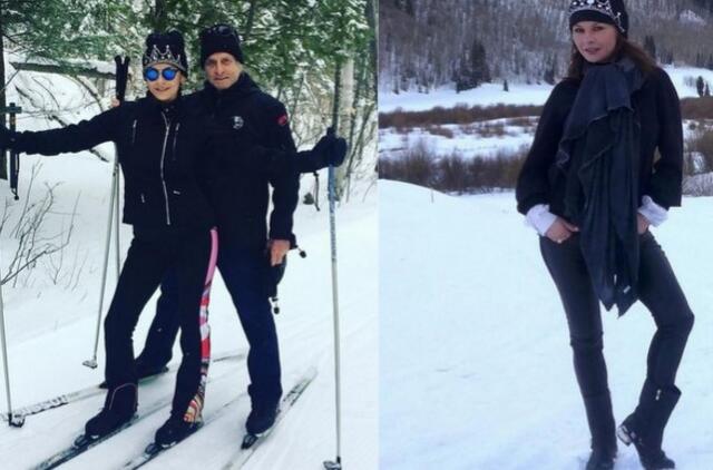 Catherine Zeta-Jones kartu su 79 metų Michaelu Douglasu po nuotykių Indijoje leidosi į slidinėjimą
