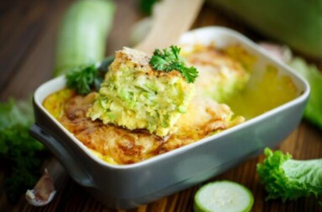 Kai kepamos cukinijos truputį paruduos, perdėti į kepimo indą, aplieti grietinėlės ir kiaušinių padažu.