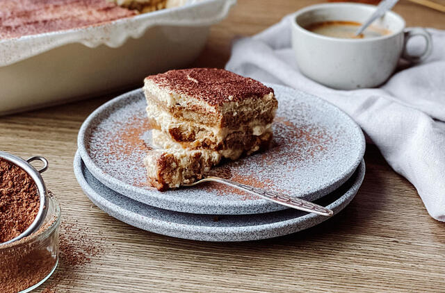 Galiausiai mentele išlyginta viršutinį sluoksnį ir naudodama smulkų sietelį apibarsto kakava. Tiramisu keliauja pailsėti į šaldytuvą bent 4 valandoms ar ilgiau, o tada jau gali būti suvalgytas. Skanaus!