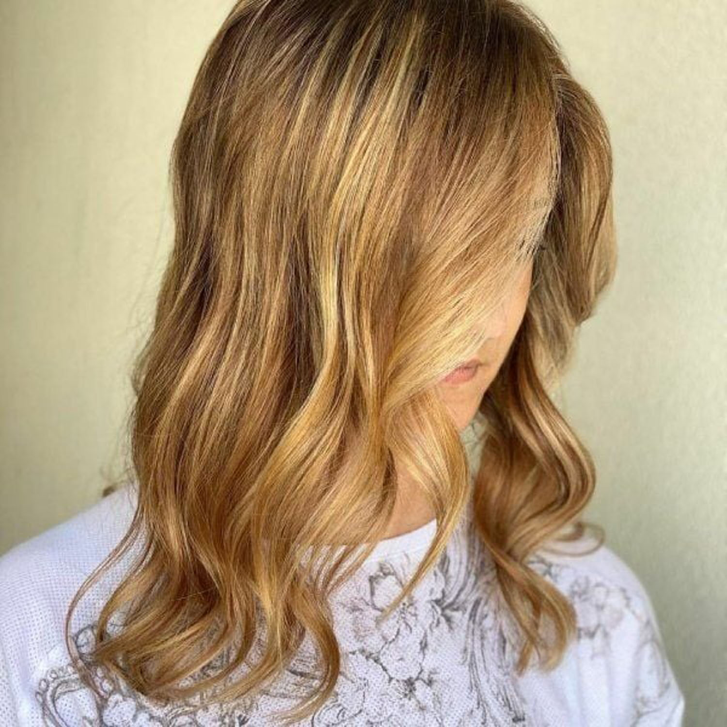 Kitaip nei šaltos blondinės, šis atspalvis suteikia šilumos ir švelnumo, nepabrėždamas su amžiumi susijusių odos pokyčių. Svarbu rinktis sodrų atspalvį be rausvo atspalvio, su tolygiu perėjimu nuo tamsių šaknų iki šviesių galiukų. Ši spalva ypač tinka moterims, turinčioms šiltus odos tonus ir rudas akis.