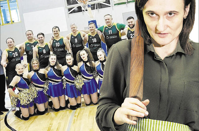 Bent jau seimūnai krepšininkai, kurie išdidžiai fotografavosi iškilę virš atsiklaupusių merginų šokėjų.