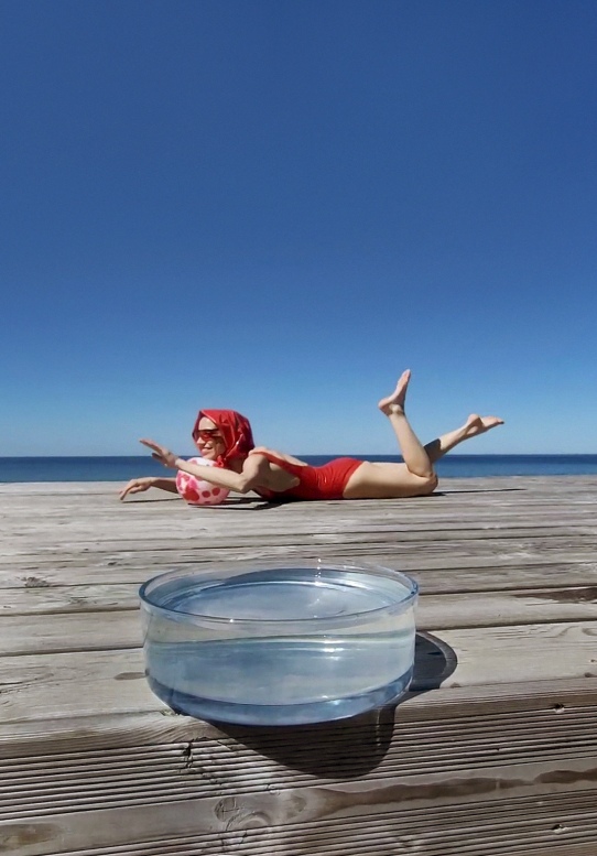 Gerai, kad buvau pasiėmusi ir savo jūrą. Stiklinį dubenėlį vandens. Jei objektą padėsi labai arti prieš plačiakampį objektyvą, jis pavirs milžiniška scena. Skaidrus vanduo nevaržo žvilgsnio, tik švelniai raibsta akyse savaip išliedamas paveikslą.