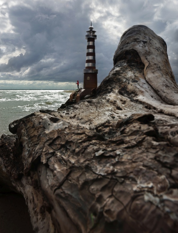 Aplinkui tyvuliuoja vandenynas. Sunkūs debesys kloja paveikslą. Savo švyturį patupdome aukštai ant uolos. Viskas atgyja. Dabar jis labiau tikras nei prieš minutėlę delne.