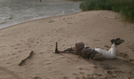 Gabijos žvilgsnį patraukia ant kranto gulintis, bangų skalaujamas medžio gabalas, gal kelmas, vandenyje jau gerokai išmirkęs. "Gal ir jį į paveikslą?" - pasiūlo mano kūrybos draugė. Prisiartiname, įsižiūrime, vėl prigulame, šįkart jau ant vėsaus ir šlapio smėlio.